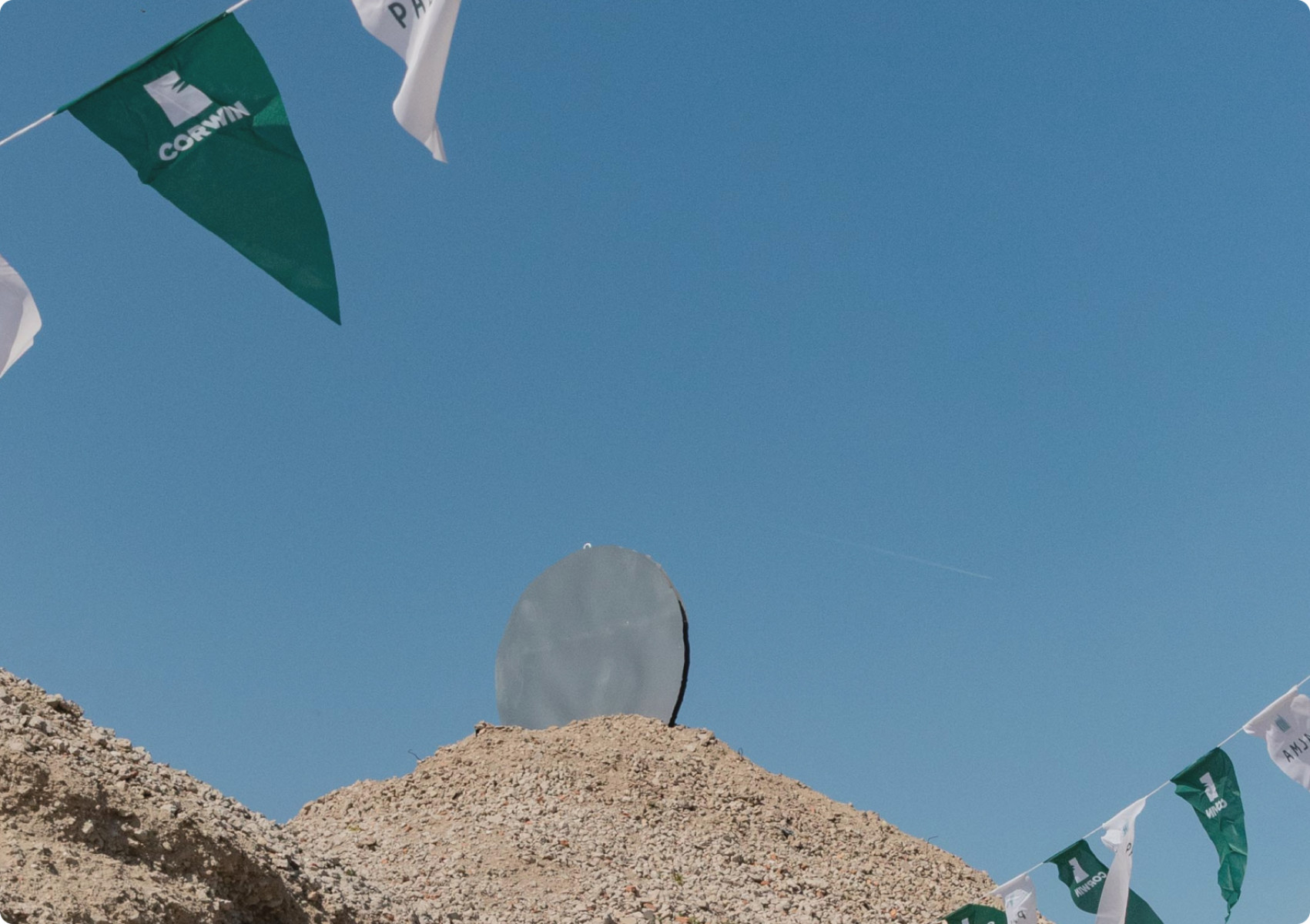 Logo realitného developera Corwin na reklamnom bannery v Bratislave