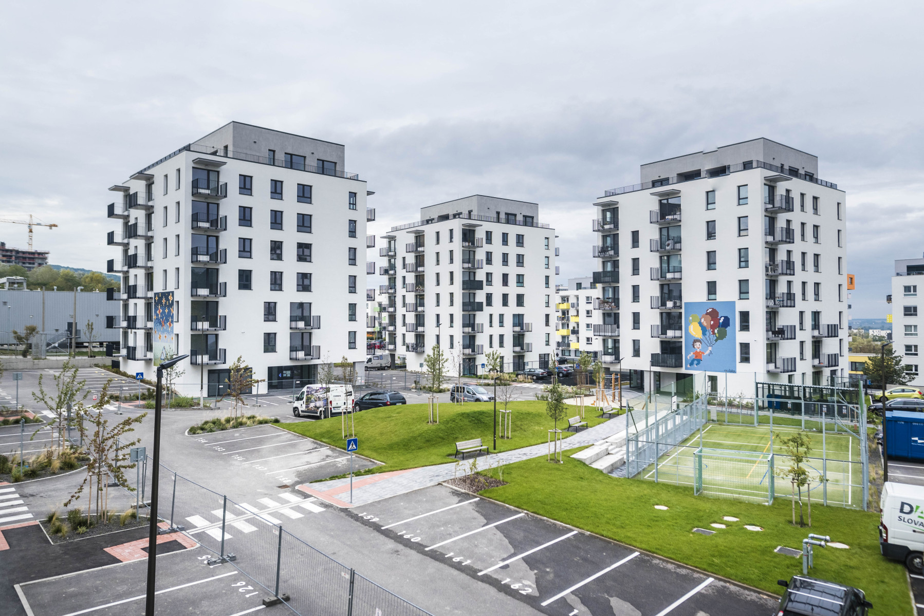 Mozaiky vznikli s cieľom, aby štvrť nebola len praktická, ale mala aj vlastný rukopis. Každý autor k zadaniu pristúpil inak, niekto cez spomienky, iný cez predstavu, aké je vyrastať v susedstve, medzi domami a ihriskami. Spája ich ľahkosť a pohľad na svet, ktorý je trochu viac otvorený a zvedavý. Výsledok je jednoduchý: osem domov, osem výrazných motívov, ktoré sa nedajú prehliadnuť
