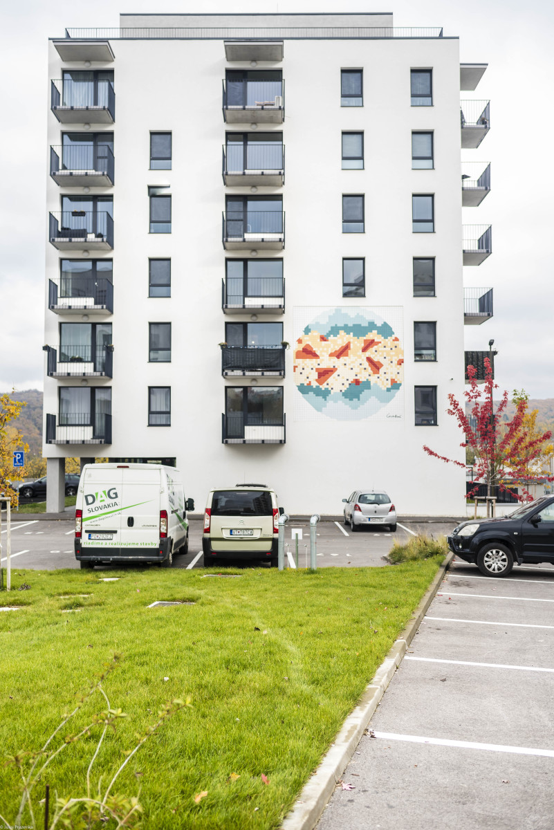Veľkoplošné mozaiky od ôsmich slovenských výtvarníkov dali každému domu vlastnú identitu a do štvrte priniesli detstvo, hravosť a fantáziu. Vznikli z viac než 30 000 kúskov kachličiek a vracajú umenie tam, kde má prirodzene miesto, priamo do každodenného mestského života.
