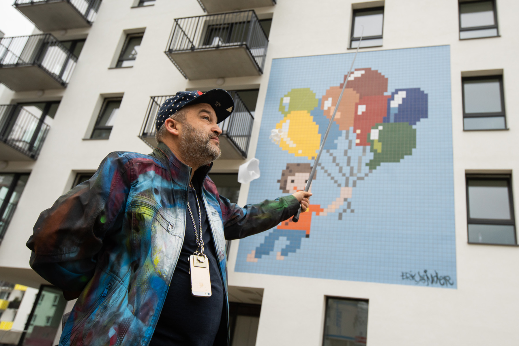 Pri vymýšľaní námetu sa Erik Binder sústredil na ľudí a ich každodenné starosti. Mozaika Úlet, zobrazujúca dieťa s balónmi má ľudí povzniesť a odpútať ich od tých starostí a povinností.